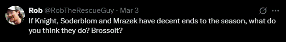I’ll start with a popular topic this time around: the all-of-a-sudden crowded goaltending situation. Our first question comes from Rob (@RobTheRescueGuy) on X: